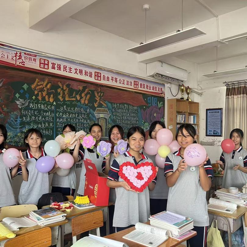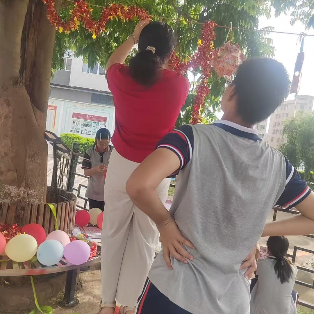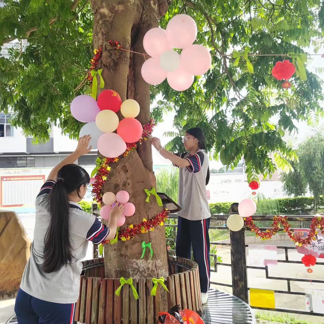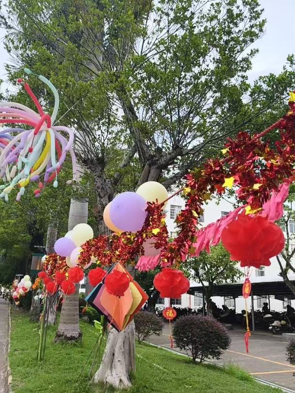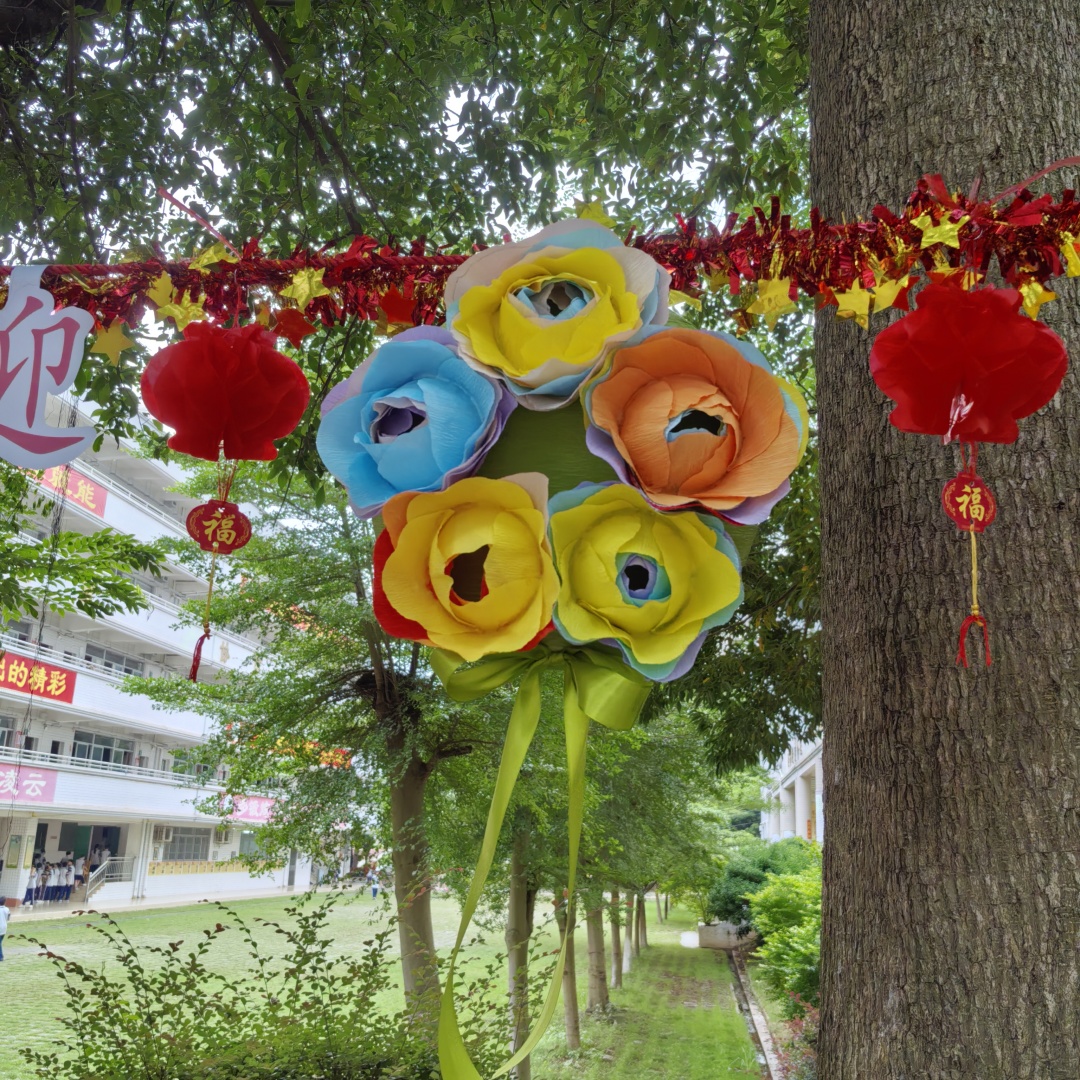 本次活動(dòng)由學(xué)校德育處與團(tuán)委聯(lián)合策劃,八九年級(jí)各班級(jí)積極參與,用創(chuàng)意與巧手將校園裝點(diǎn)得喜慶而溫馨。讓學(xué)生通過(guò)手工勞動(dòng),將對(duì)傳統(tǒng)文化的熱愛與對(duì)祖國(guó)的祝福,巧妙轉(zhuǎn)化為校園中一道道亮麗的風(fēng)景線。 校園煥新顏,雙節(jié)同慶氛圍濃。彩紙制成的繁花在絢爛“綻放”,形態(tài)各異的創(chuàng)意掛飾錯(cuò)落有致;繽紛的彩帶與構(gòu)思巧妙的燈謎交織,共同將校園裝點(diǎn)得斑斕絢麗,節(jié)日氣氛濃郁。 巧手展才藝,匠心獨(dú)具顯情懷。在為期七天的裝飾制作與布置期間,各班同學(xué)在班主任的指導(dǎo)下充分發(fā)揮團(tuán)隊(duì)協(xié)作精神,利用課余時(shí)間精心創(chuàng)作。同學(xué)們巧妙運(yùn)用學(xué)校提供的卡紙、彩帶等基礎(chǔ)材料,同時(shí)融入紙盒子、塑料瓶等可回收材料,既體現(xiàn)了環(huán)保理念,又展現(xiàn)了無(wú)限創(chuàng)意。 9月29日,由校領(lǐng)導(dǎo)、教師代表組成的評(píng)審團(tuán)對(duì)各班裝飾區(qū)域進(jìn)行了現(xiàn)場(chǎng)評(píng)比。評(píng)委們對(duì)裝飾作品給予了高度評(píng)價(jià),特別贊賞了同學(xué)們?cè)谧髌分兴w現(xiàn)出來(lái)的巧思妙想以及對(duì)傳統(tǒng)文化的傳承和對(duì)祖國(guó)的熱愛。最終每個(gè)年級(jí)評(píng)選出一等獎(jiǎng)3名,二等獎(jiǎng)5名,三等獎(jiǎng)8名。 此次活動(dòng)成功地將美育、勞育與愛國(guó)主義教育有機(jī)融合,同學(xué)們?cè)趧?dòng)手實(shí)踐中深化了對(duì)傳統(tǒng)文化的認(rèn)知,在團(tuán)隊(duì)協(xié)作中增強(qiáng)了集體榮譽(yù)感,在創(chuàng)意設(shè)計(jì)中抒發(fā)了愛國(guó)情懷。未來(lái),學(xué)校將繼續(xù)開展更多豐富多彩的校園文化活動(dòng),為同學(xué)們提供展示才華的舞臺(tái),讓家國(guó)情懷根植在每個(gè)學(xué)子的心中。