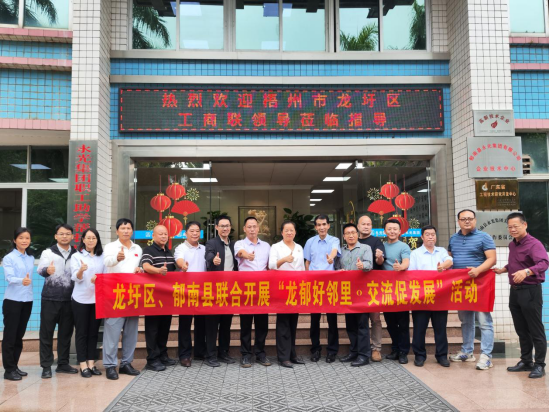 2025年10月21日,廣西壯族自治區(qū)梧州市龍圩區(qū)工商聯(lián)考察團(tuán)一行赴廣東省云浮市郁南縣開展考察交流。梧州市龍圩區(qū)委常委、統(tǒng)戰(zhàn)部部長覃水妹,郁南縣委常委、統(tǒng)戰(zhàn)部部長彭家新參加相關(guān)活動(dòng),兩地統(tǒng)戰(zhàn)部、工商聯(lián)負(fù)責(zé)人陪同。