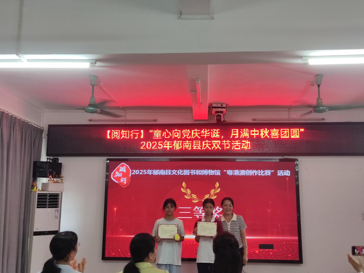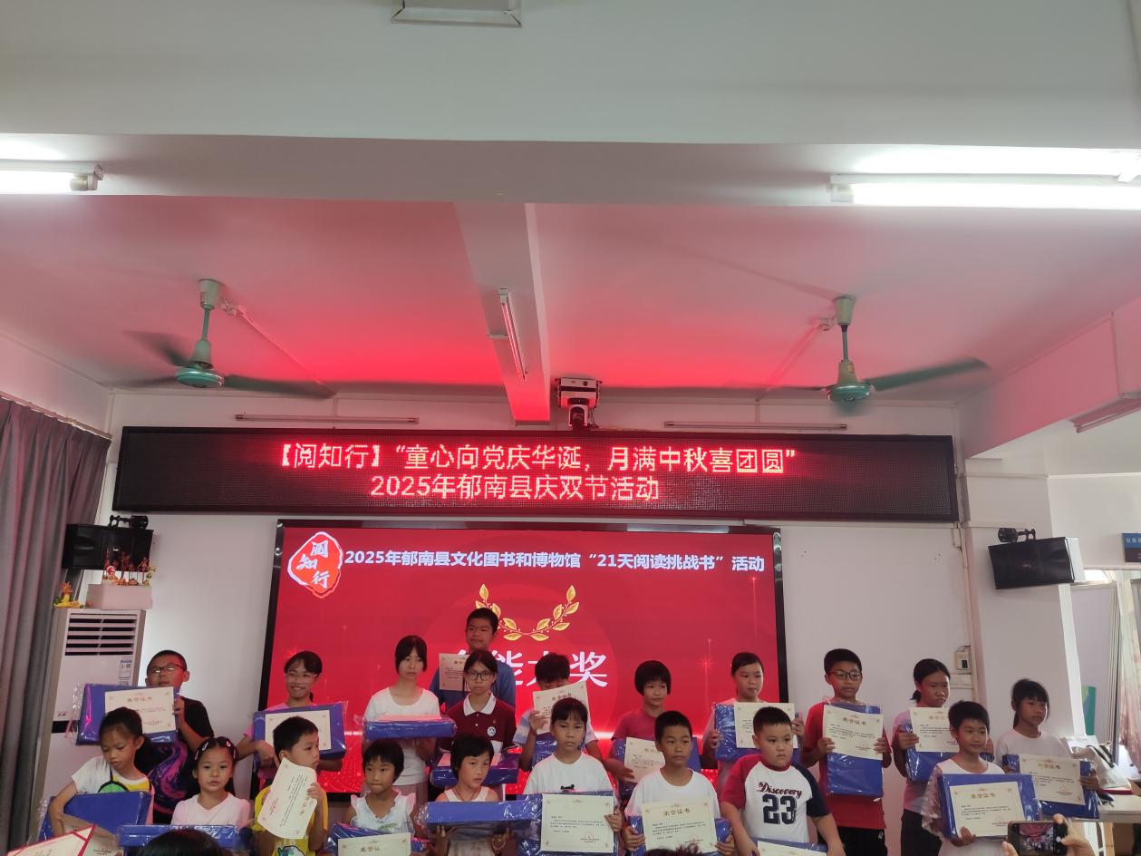 金秋十月,家國同慶。2025年10月1日上午10時,由中共郁南縣委宣傳部、郁南縣文化廣電旅游體育局主辦,郁南縣文化圖書和博物館承辦的“童心向黨慶華誕,月滿中秋喜團圓”雙節(jié)慶?;顒?,在郁南縣圖書館四樓溫情落幕?;顒右浴皞鞒袀鹘y(tǒng)文化、厚植家國情懷”為主線,通過“頒獎、誦讀、親子手工”三大環(huán)節(jié),融合書香雅韻與節(jié)日氛圍,為現(xiàn)場親子家庭呈現(xiàn)了一場意蘊深厚的文化體驗,收獲了廣泛好評。