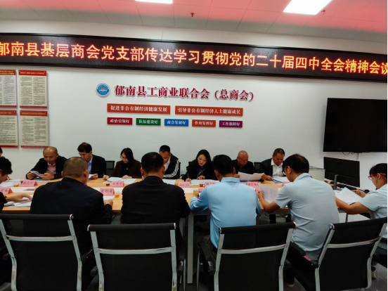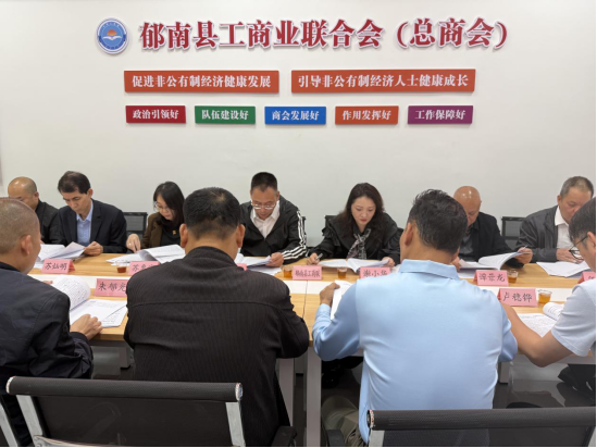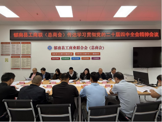 2025年11月3日,郁南縣工商聯(lián)組織各鎮(zhèn)商會、直屬行業(yè)商會會長、縣工商聯(lián)(總商會)班子成員和基層商會黨支部書記在縣總商會會員之家會議室舉行傳達學(xué)習貫徹黨的二十屆四中全會精神會議。
