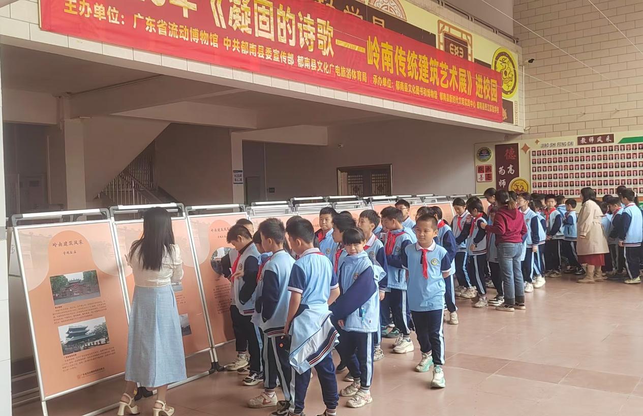 近日,由廣東省流動(dòng)博物館、中共郁南縣委宣傳部郁南縣文化廣電旅游體育局主辦,郁南縣文化圖書(shū)和博物館、郁南縣新時(shí)代文明實(shí)踐中心、郁南縣西江實(shí)驗(yàn)學(xué)校共同承辦的《凝固的詩(shī)歌——嶺南傳統(tǒng)建筑藝術(shù)圖片展》《探尋“最早廣東人”——磨刀山遺址圖片展》走進(jìn)校園。