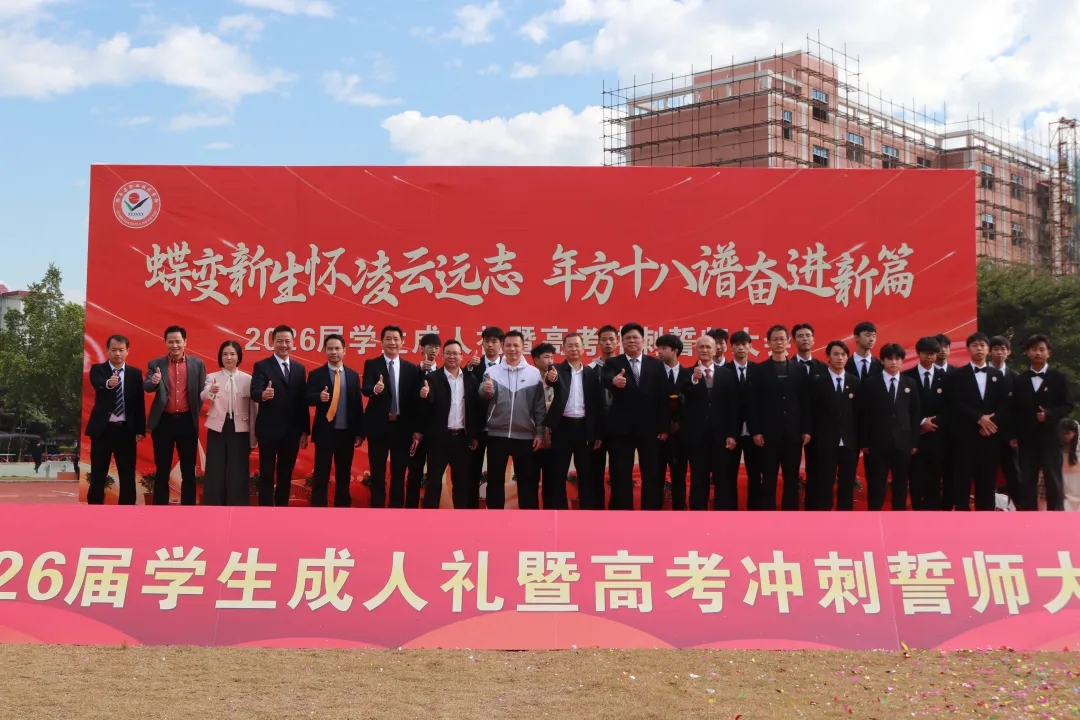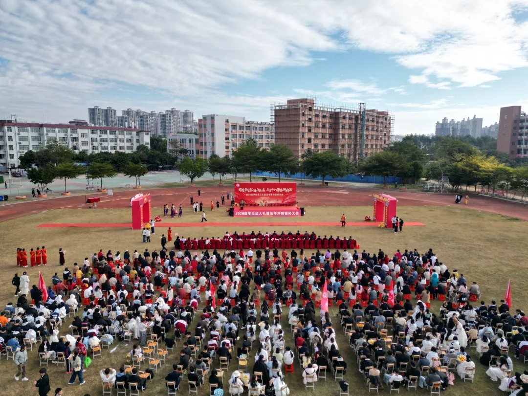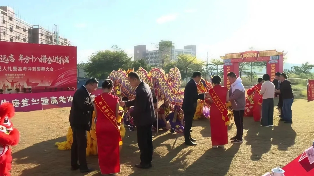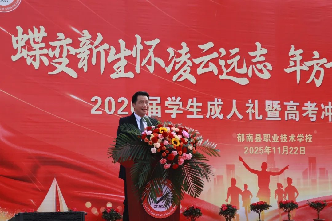 2025年11月22日上午,郁南縣職業(yè)技術(shù)學校足球場彩旗飄揚、禮炮齊鳴,2026屆成人禮暨高考沖刺誓師大會隆重舉行。大會以“蝶變新生懷凌云遠志,年方十八譜奮進新篇”為主題,縣政府副縣長溫伯榮、縣教育局副局長吳卓堯等縣領(lǐng)導和局領(lǐng)導,學校班子與中層行政,23級高考部全體師生及家長代表共千余人齊聚現(xiàn)場,共同見證這一莊重時刻。