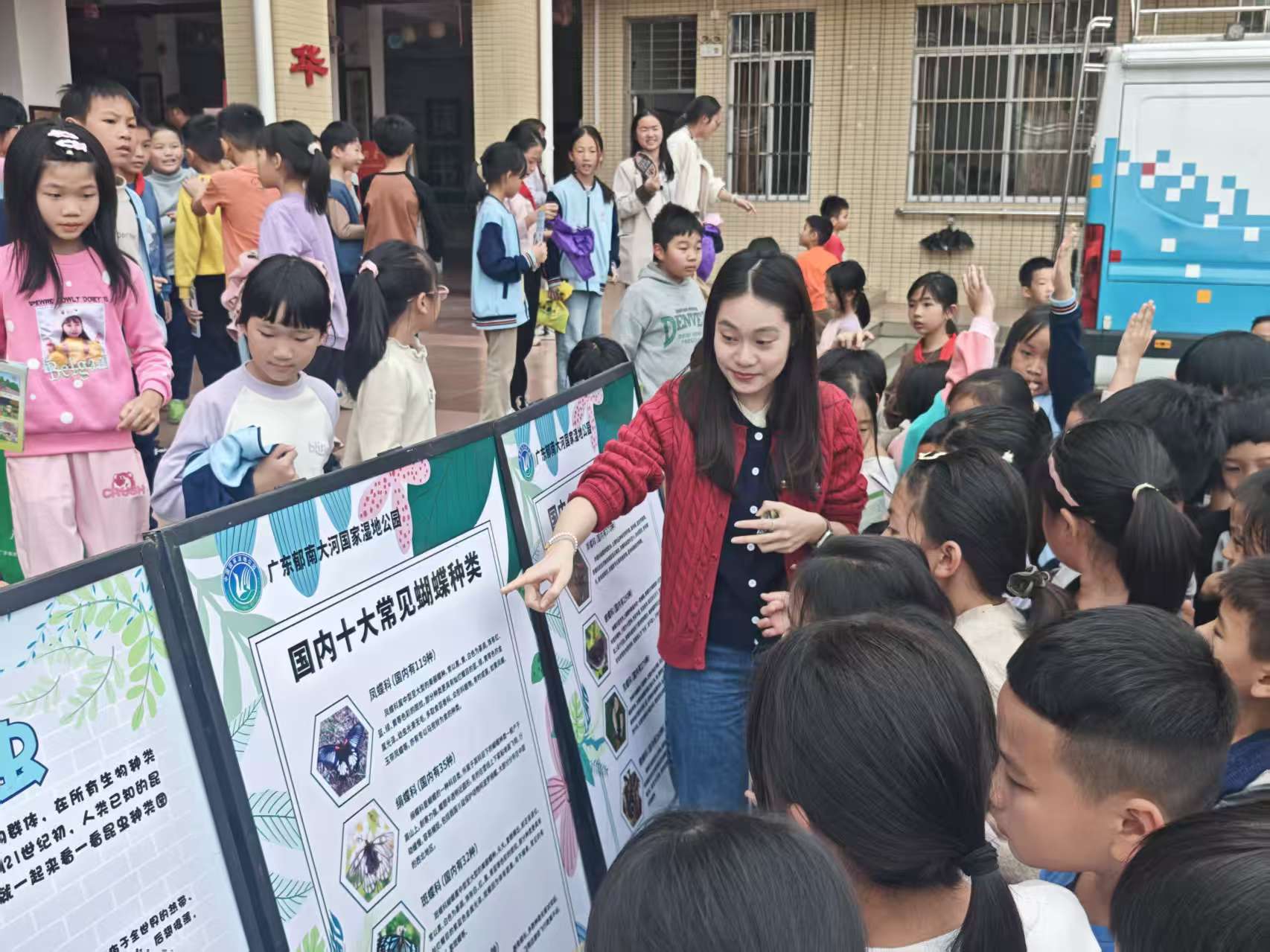 本次活動(dòng)聚焦體驗(yàn)感與互動(dòng)性,亮點(diǎn)紛呈。濕地公園向?qū)W校捐贈(zèng)了自主編撰的科普讀物,同步設(shè)置專題展板與二十余件動(dòng)植物標(biāo)本,讓同學(xué)們近距離感受生物多樣性的魅力??破展ぷ魅藛T結(jié)合展品與展板內(nèi)容,系統(tǒng)講解濕地生態(tài)功能、動(dòng)植物保護(hù)常識(shí)及相關(guān)法律法規(guī),引導(dǎo)同學(xué)們通過(guò)手抄報(bào)、自然筆記等形式記錄身邊生態(tài),深化對(duì)濕地與森林生態(tài)系統(tǒng)的認(rèn)知,進(jìn)一步增進(jìn)對(duì)家鄉(xiāng)生態(tài)資源及保護(hù)成效的了解。