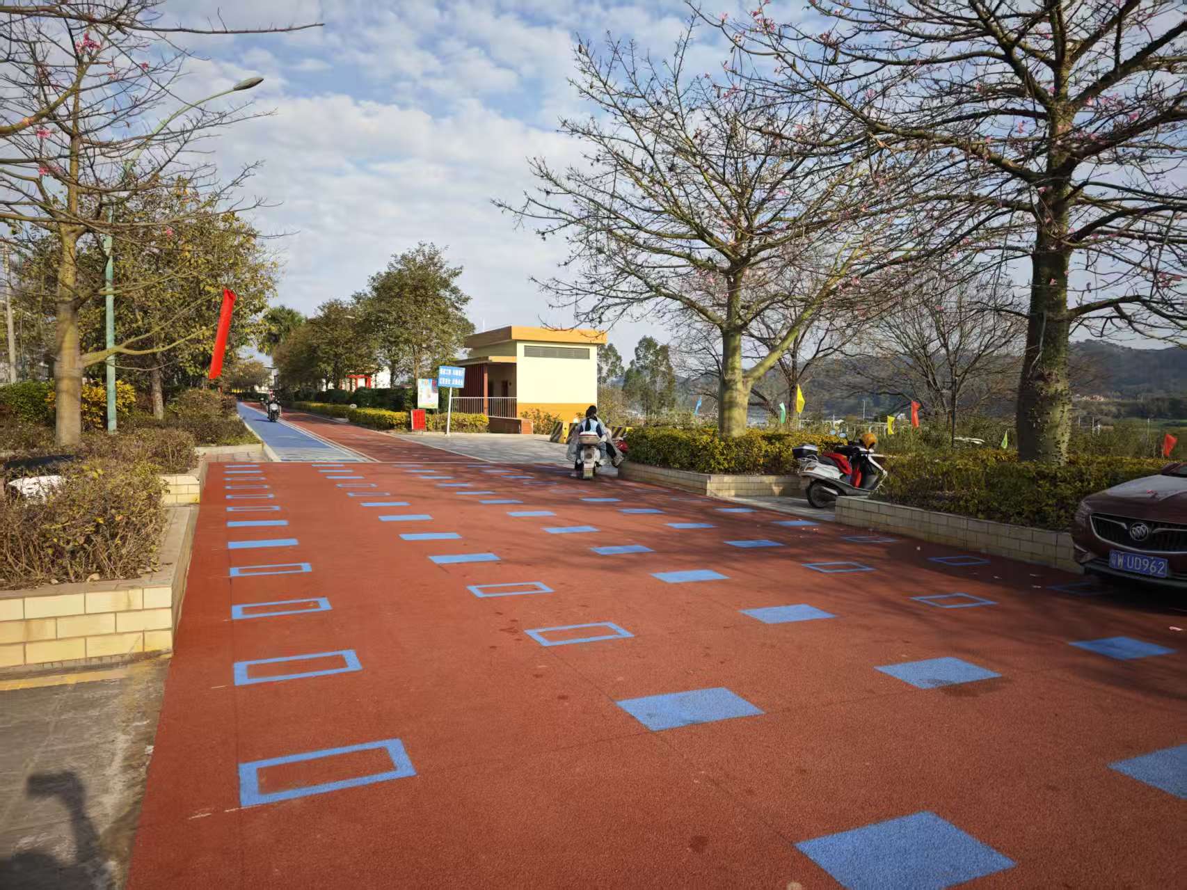 巧織“彩虹”,賦能添彩,激活民生空間。在確保堤防安全與生態(tài)功能的基礎(chǔ)上,為滿足群眾對(duì)美好濱水生活的向往,在堤頂精心鋪設(shè)了一條蜿蜒亮麗的“彩虹步道”,該步道選用環(huán)保陶瓷顆粒,以明快的色彩分段涂裝,路面實(shí)行騎行、步行分流,并通過(guò)標(biāo)識(shí)圖案展示我縣水文化、無(wú)核黃皮、自然資源、特色地標(biāo),將碧道線變?yōu)椤拔鹘适隆钡捏w驗(yàn)線。步道串珠成鏈,將江濱公園、水文化公園、牛圩公園、自然灘涂有機(jī)融合,沿線優(yōu)化完善了休憩長(zhǎng)椅、景觀照明、安全護(hù)欄及科普標(biāo)識(shí)牌,形成多層級(jí)空間體驗(yàn),滿足水位變化后群眾的休閑、運(yùn)動(dòng)、觀景等多重需求。昔日功能單一的堤防,如今成為一個(gè)人與自然和諧共生的生態(tài)景觀,人們?cè)谶@里可以緣水而行、遇景而停,盡情享受大自然的美好,濱水休閑廊道公共效益進(jìn)一步發(fā)揮。