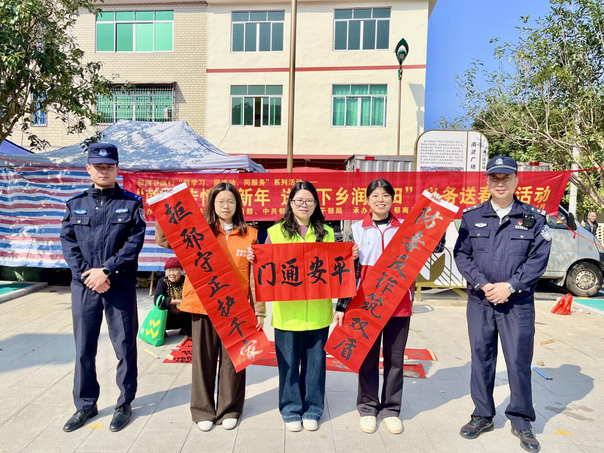 新春將至,年味漸濃。為營(yíng)造喜慶祥和的節(jié)日氛圍,同時(shí)深化平安建設(shè)宣傳工作,通門鎮(zhèn)平安法治辦借力郁南縣老干部大學(xué)書法班師生下鄉(xiāng)送春聯(lián)的熱鬧契機(jī),在通門南武廣場(chǎng)開展平安建設(shè)宣傳活動(dòng),將禁毒、反邪教、反詐騙等安全知識(shí)與傳統(tǒng)年俗深度融合,讓群眾在墨香中收獲平安“年貨”。