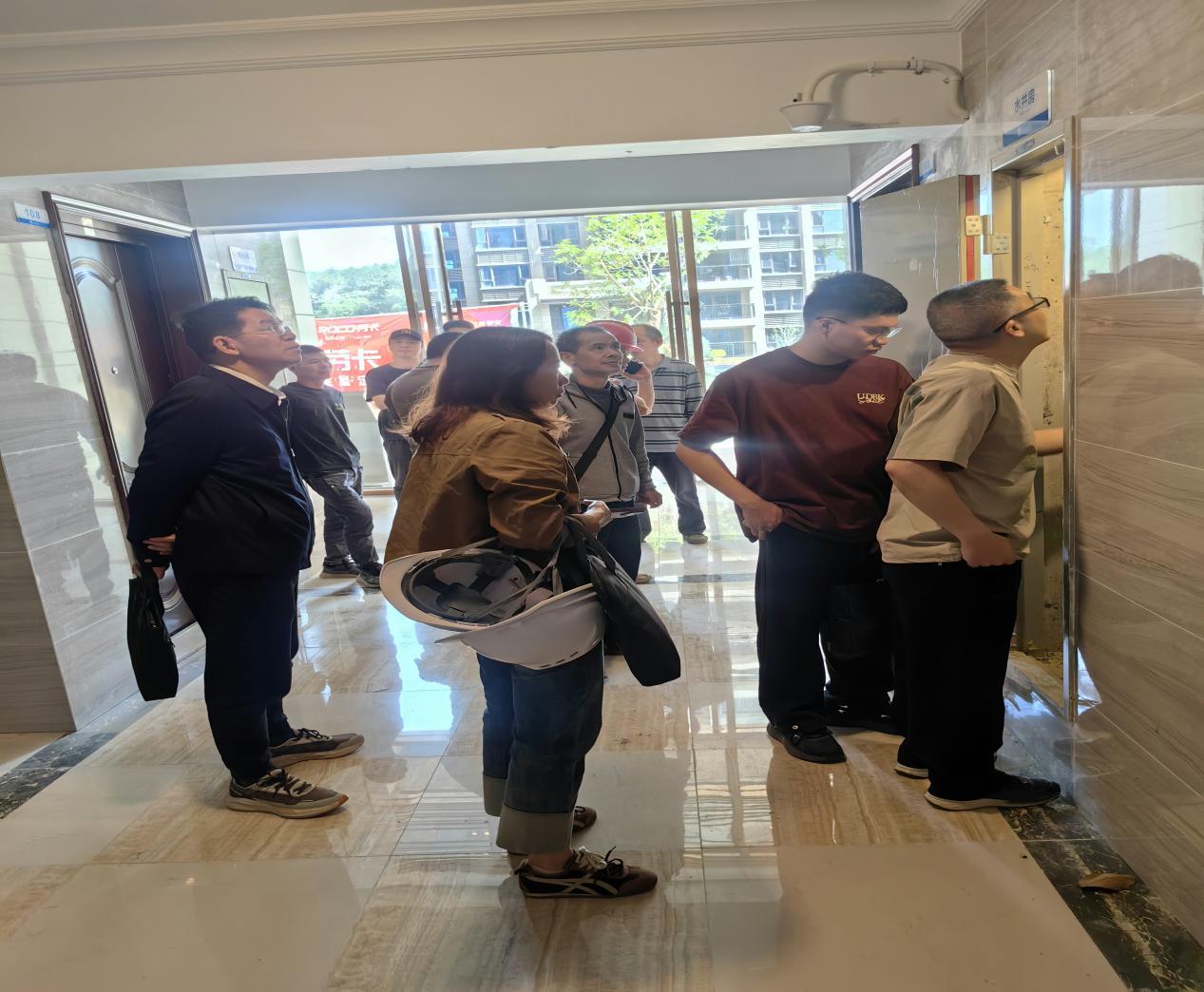 在郁南縣碧桂園西江府5-8號樓現(xiàn)場檢查,檢查組人員對該項目建設工程消防設計審查許可、申請消防驗收等情況進行檢查,通過查閱工作臺賬等資料,了解了落實消防工作的做法,同時還檢查了該項目消防設施、器材是否配備齊全、完好有效;疏散通道、安全出口、消防通道是否暢通等情況。并對存在問題提出工作意見:一是建設單位、施工單位要高度重視建設工程消防安全工作,充分認識消防安全管理工作的重要性,壓緊壓實安全生產(chǎn)責任,確保思想到位、工作到位、措施到位、防范到位;二是壓實企業(yè)各方消防安全主體責任。建設單位要履行施工現(xiàn)場消防安全首要責任,施工總承包單位要對施工現(xiàn)場消防安全負主體責任;監(jiān)理單位要切實履行消防安全監(jiān)理職責,督促施工單位建立、落實各項消防安全制度及措施。